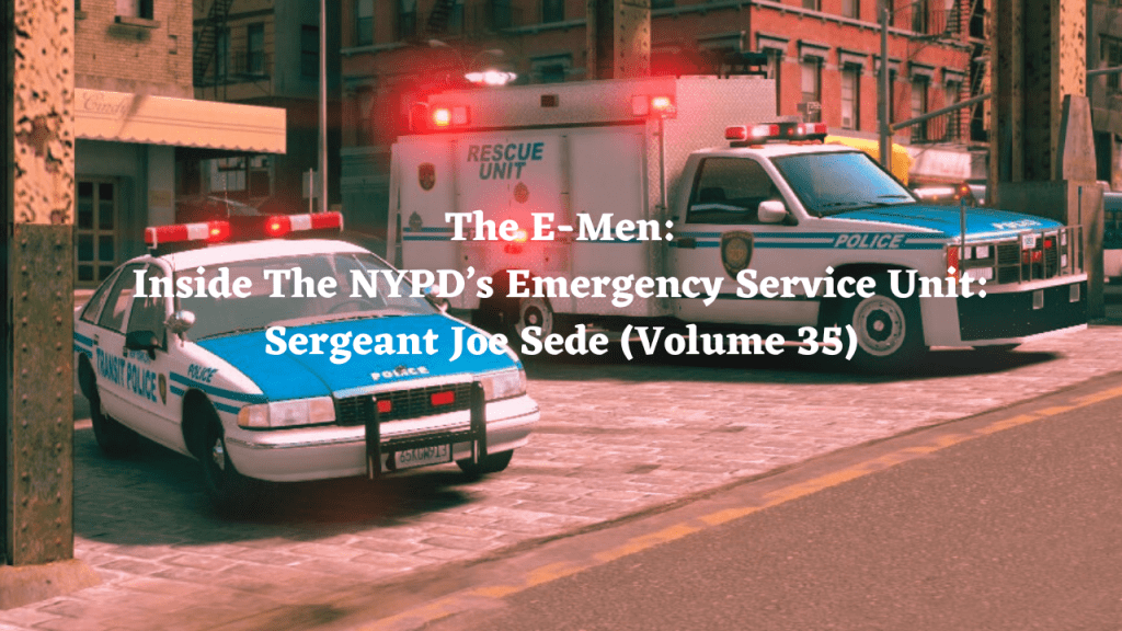 Thus, the Emergency Medical Rescue Unit was born. Serving in it from its inception until just before its finality with its 1995 merger with the NYPD ESU, his exact tenure ranges from 1977 to his retirement in 1994. He’s Sergeant Joe Sede and he’ll be the guest for Volume 35 of The E-Men: Inside The NYPD’s Emergency Service Unit.