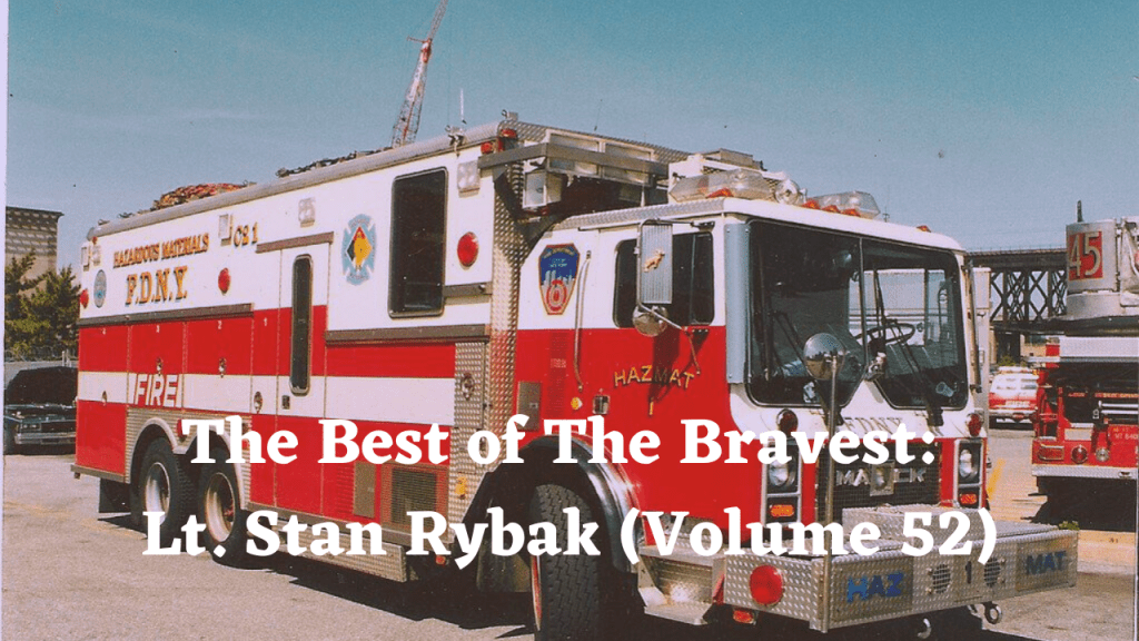 For 21 years he got down and dirty as a member of the New York City Fire Department. Coming onto the job in 1981, he spent the first decade of his career as an engine man in houses like Engine 90, 217, and 331. Making Lieutenant in 1991, his other stops would include Battalion 53, the Training Division, and the Special Operations Command as a member of Haz-Mat 1 which he’d arrive to in November of 1994 in what would ultimately be his final stop before his retirement in October of 2002. He’s retired Lieutenant Stan Rybak and he’s the guest for Volume 52 of The Best of The Bravest: Interviews with The FDNY’s Elite.
