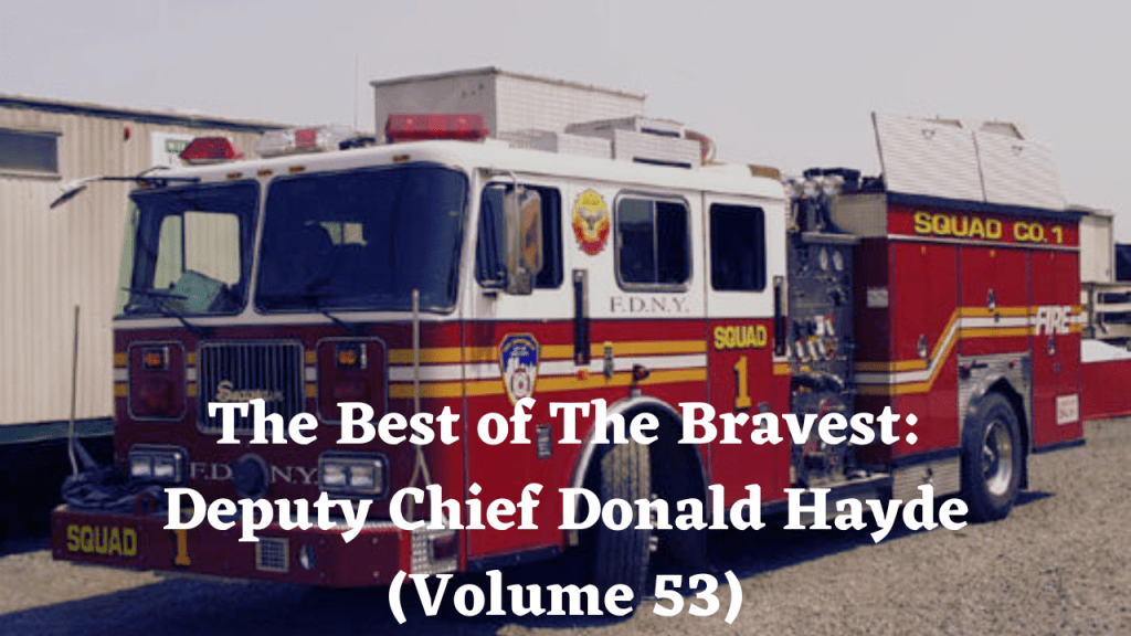 He had a stop in Battalion 41/Engine 241 in between, but he spent over 20 years of an outstanding career in the department’s Special Operations Command. First as the Captain of Squad 1 in Brooklyn from 1994 until 2000 and then as a Chief in the FDNY’s Rescue Battalion. Joining me for Volume 53 of The Best Of The Bravest: Interviews With The FDNY’s Elite will be retired FDNY Deputy Chief Donald Hayde.
